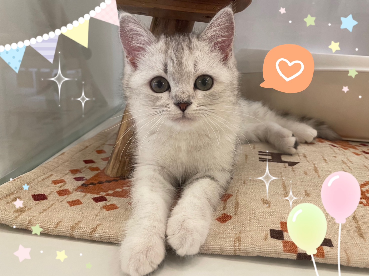 他のシルバータビーの子達と比べて白い部分が多く、ふわふわっとした被毛がチャームポイントです(∩ˊ꒳ˋ∩)・*